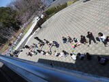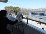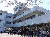 職員室のお留守番をしながら、働きものの教頭先生が、職員玄関から卒業生を見送っています。目には、うっすらと涙が……。