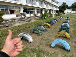 全力運動会に向けて、環境整備をコツコツ進めます。 最強の助っ人 草刈りマサオ君が、10月9日(木)、教育委員会の皆さんと西が丘小にやってきて、運動会の前の環境美化活動の仕上げをやっていただく計画です。よろしくお願いします。(当日は、体育館の下ののり面もお手伝いいただけたら幸いです。) 今日は、マサオ君が入ることができない部分の校庭の草刈りをしました。 そうそう、タイヤの周りの草刈りもしておきましょう。雨が降れば、タイヤの上のホコリやちりをきれいに洗い流してくれるでしょう。そうしたら、いよいよ、待ちに待ったペンキ塗りです。 マサオ君とペンキを首を長くして待ちたいと思います。 イチョウの横ののり面の最強の草「ちがや」対策。ヒガンバナの球根を埋めたら、対策できるでしょうか? 実験してみたいと思います。