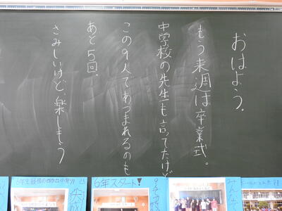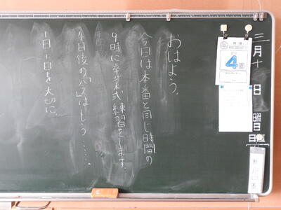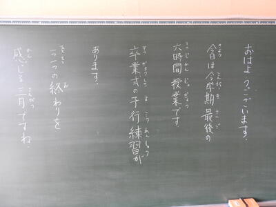 おはようございます! 今日も、表彰朝会、卒業式予行、高校生の卒業生訪問……と豊かな行事が満載です。 一つ一つに真心を込めて、一日一日を子供たちと先生方と大切に過ごしていきます。