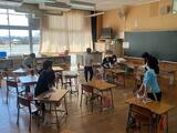 お隣の1年生の教室では、優しい担任の先生と子供たちが、1年間、お世話になった机とイスをきれいにふいてました。